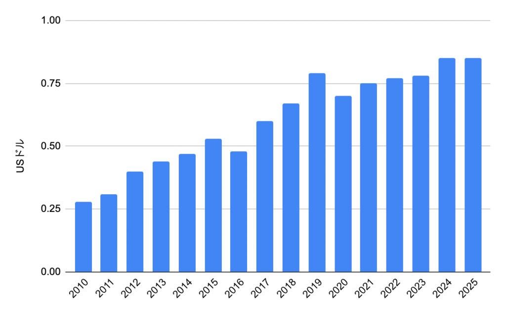 | 2025年 | 0.85 | 0.86 | 0.85 | – | 2.56 |
